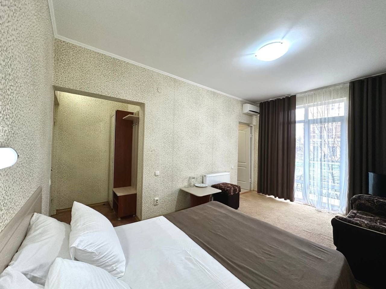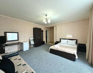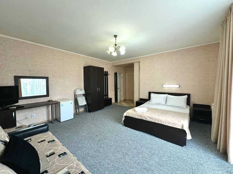 Уютные номера выполнены в стандартном стиле. В каждой комнате есть кондиционер, балкон, телевизор, холодильник, собственная ванная комната с душем и ванной и свежее постельное белье.