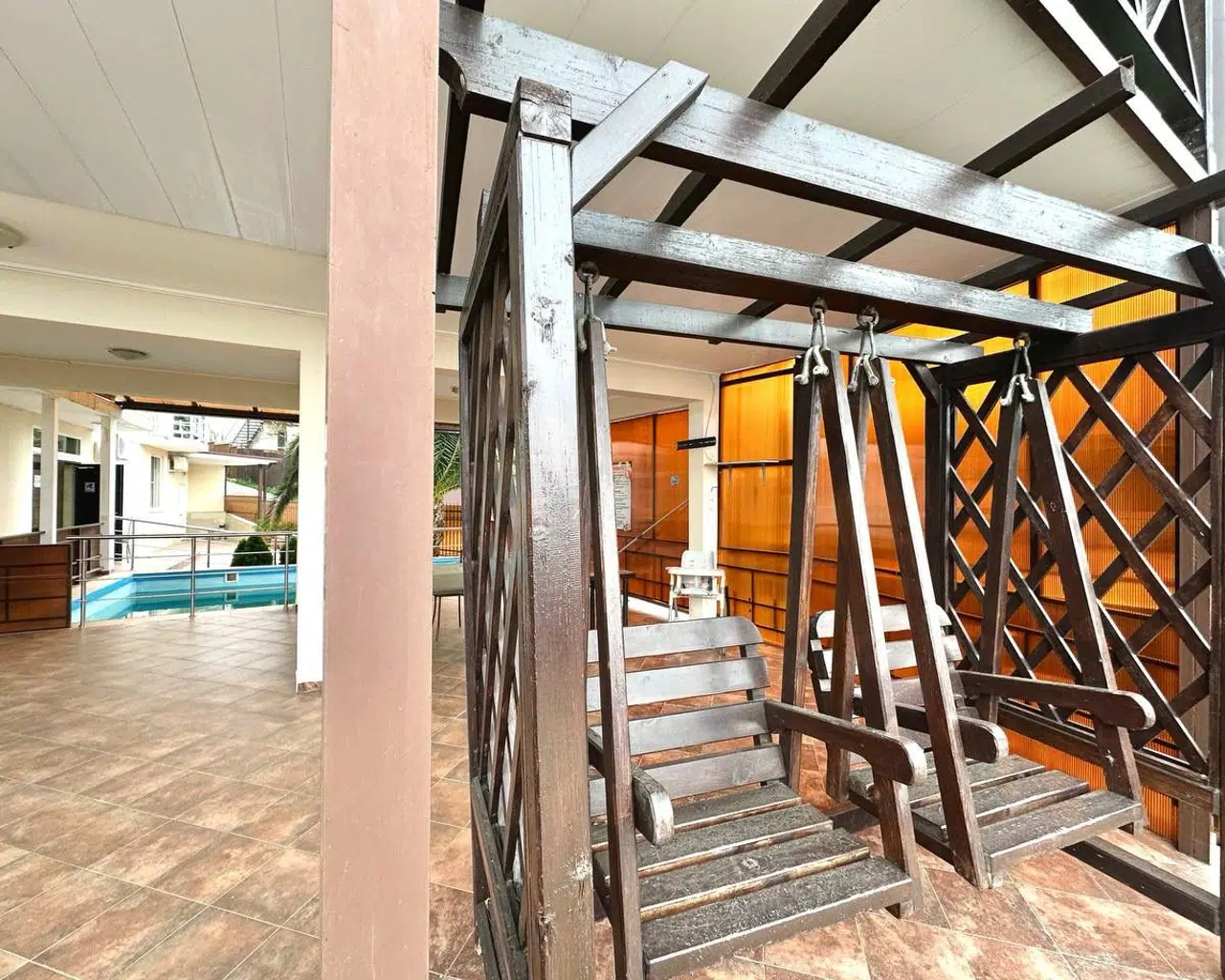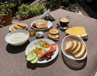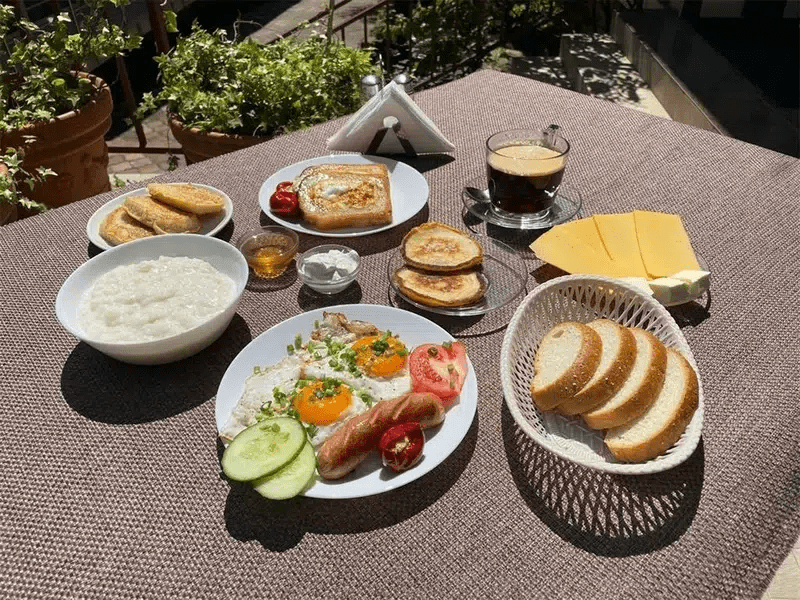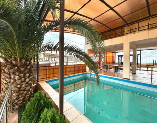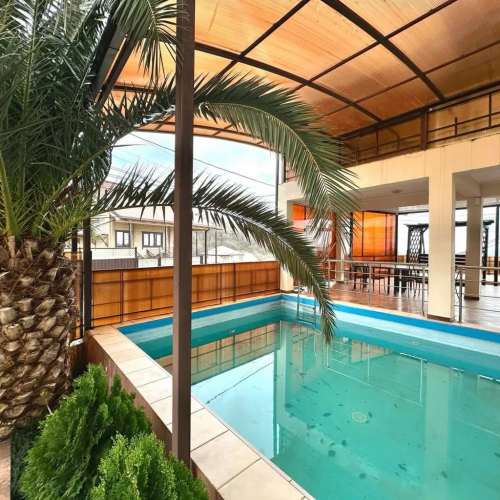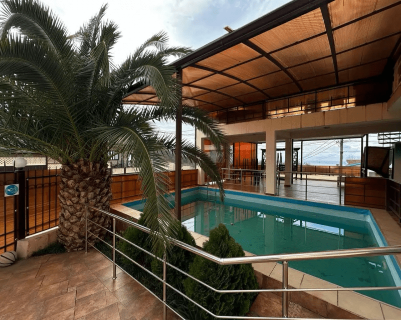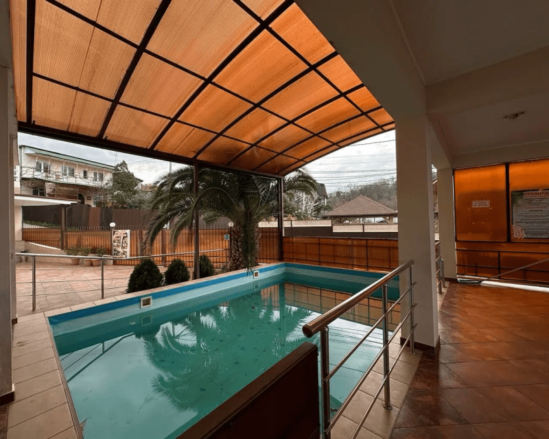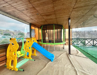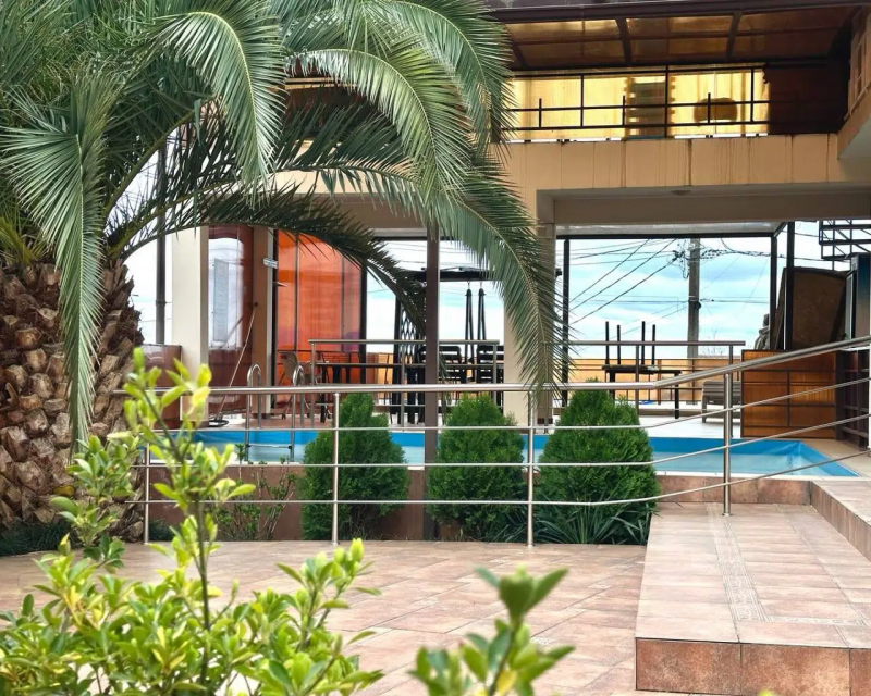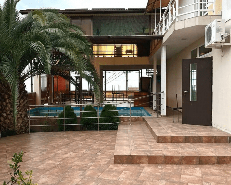 К услугам гостей открытый бассейн, терраса для загара, собственный сад. На территории работает кафе, где можно вкусно поесть на завтрак, обед или ужин, а на общей оборудованной кухне желающие могут самостоятельно приготовить пищу. Для маленьких гостей обустроена детская игровая площадка с игрушками и батут. Для автолюбителей предусмотрена парковка. На всей территории гостиницы работает Wi-Fi.