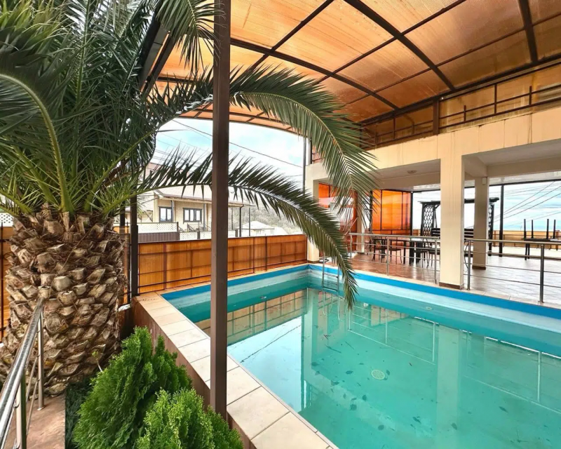 Самолетом до аэропорта Адлер, далее на автобусе №105с,105 до остановки «Вокзал Сочи», далее пересадка на автобус №75, 76, 77 до остановки «Школа №77», далее пройти 970 м до гостевого дома.